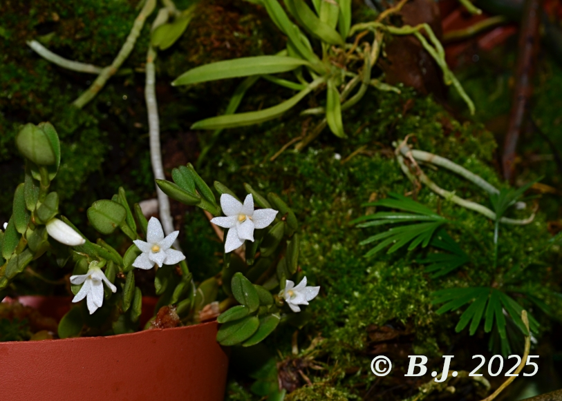 ungeachtet der großen Höhenunterschiede am Naturstandort wächst die Art sehr gut unter warmen humiden Bedingungen, kann aber sicherlich auch mit relativ niedrigen Temperaturen im Winter zurecht kommen. Auf Réunion wächst sie auch lithophytisch auf Felsen aus Korallenkalk   /   Despite the large differences in altitude in its natural habitat, the species grows very well under warm, humid conditions, but can certainly also cope with relatively low temperatures in winter. On Réunion Island it also grows lithophytically on rocks made of coral limestone   /  (Sekt.: Pectinaria)